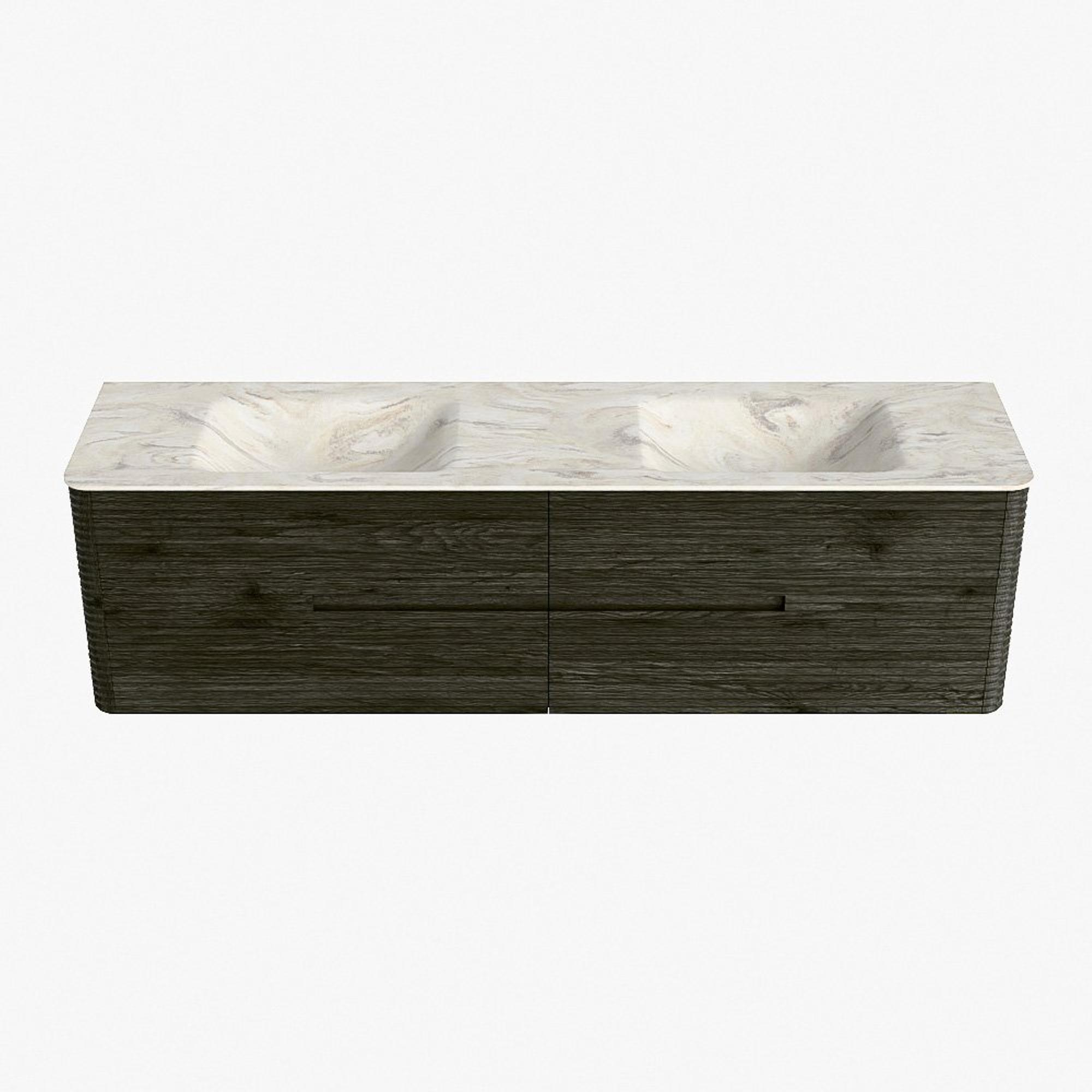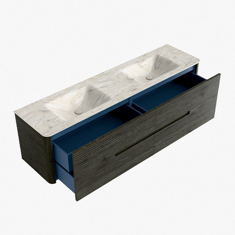 Mondiaz CIRO-DLUX Ensemble de meuble de salle de bains - 180x45x50cm - Plan vasque solid surface Ostra - 2 vasques Double - 2 trous de robinet - 4 tiroirs - Shadow