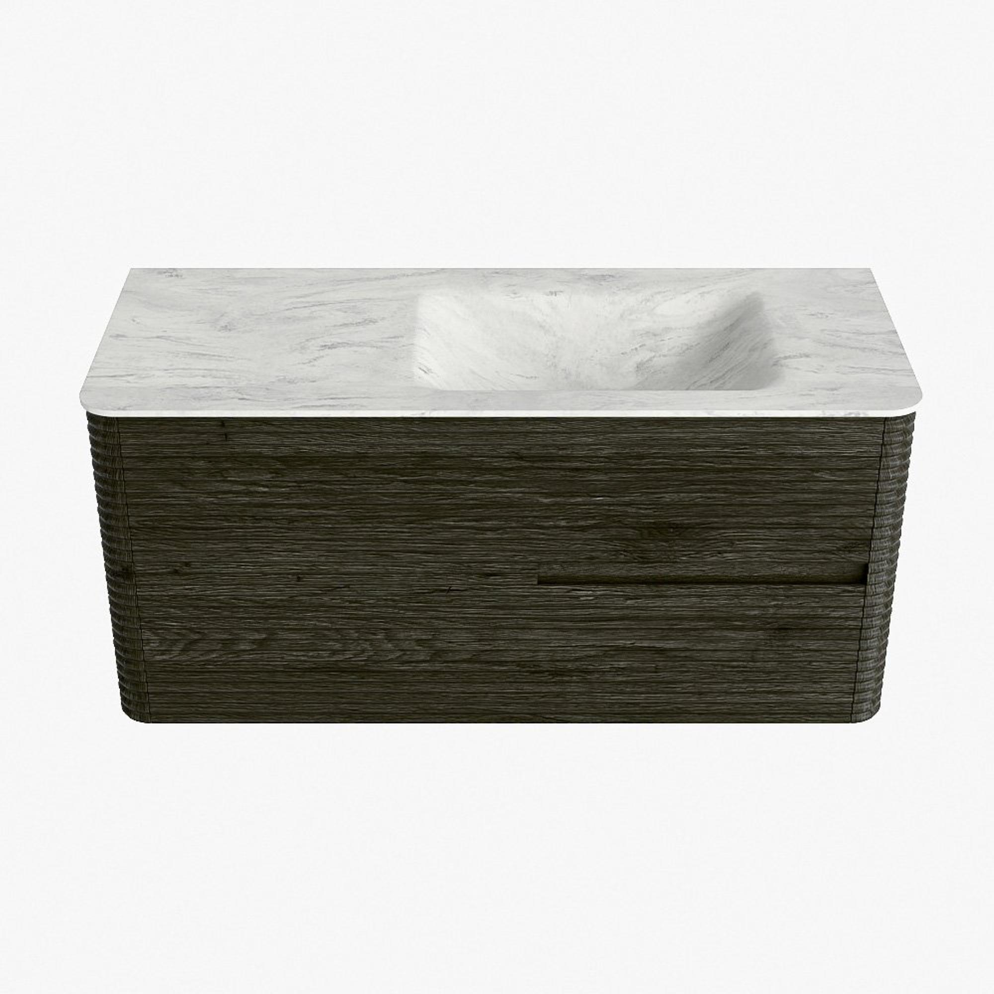 Mondiaz CIRO-DLUX Ensemble de meuble de salle de bains - 110x45x50cm - lavabo Solid surface Opalo - 1 vasque à droite - 1 trou de robinet - 2 tiroirs - Shadow