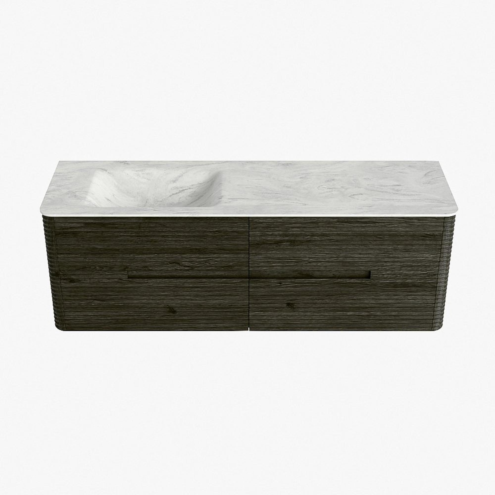 Mondiaz CIRO-DLUX Meuble de salle de bains - 150x45x50cm - Vasque solid surface Opalo - 1 lavabo à gauche - 1 trou de robinet - 4 tiroirs - Shadow