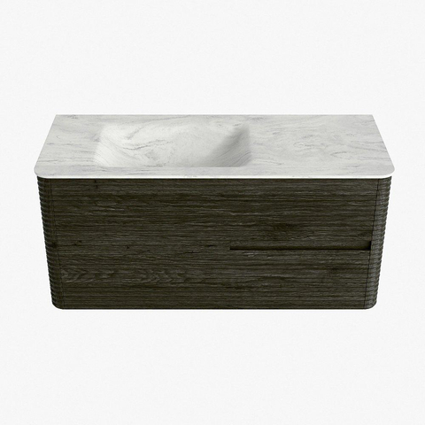 Mondiaz CIRO-DLUX Ensemble de meubles de salle de bains - 110x45x50cm - vasque solid surface Opalo - 1 bassin à gauche - sans trous de robinet - 2 tiroirs - Shadow