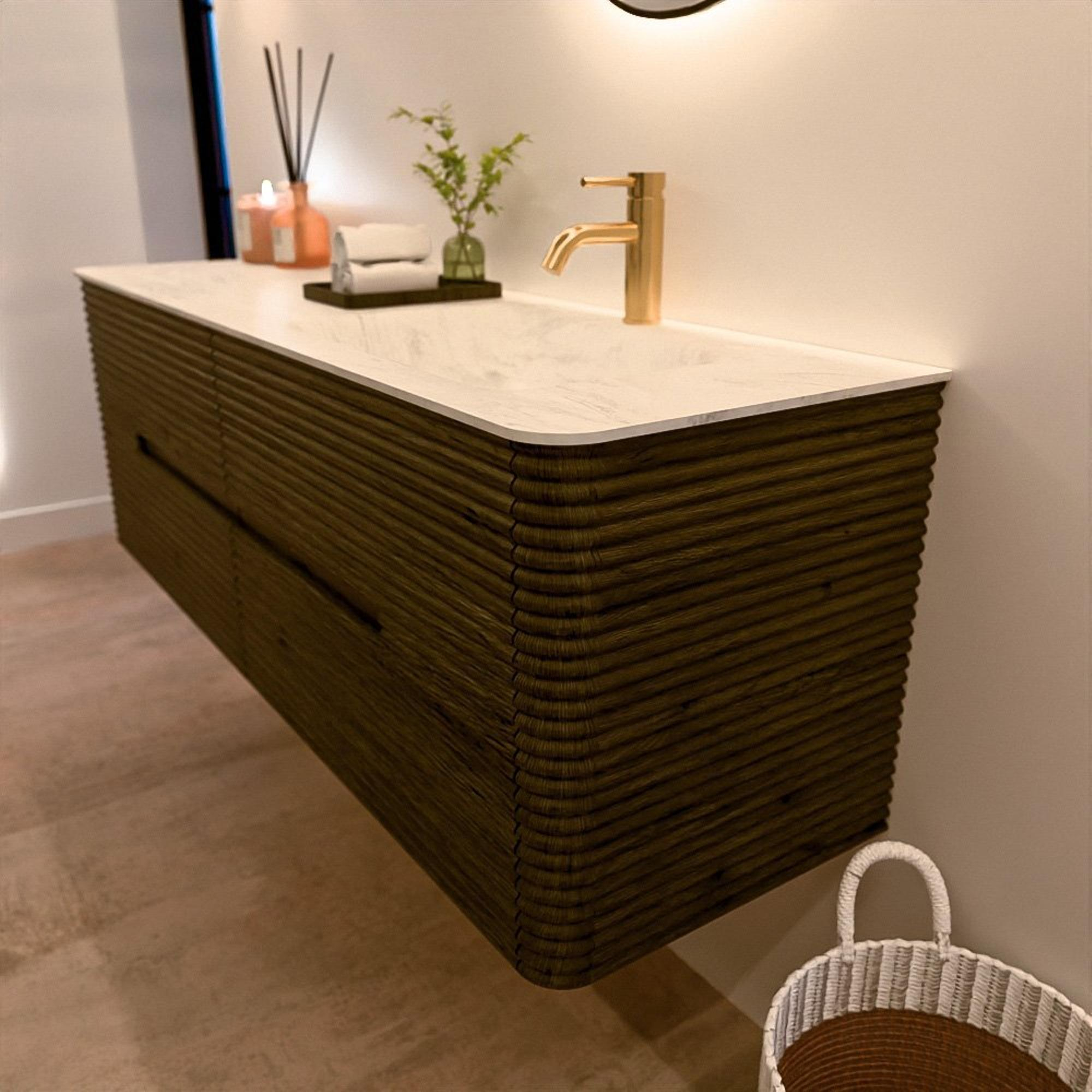 Le meuble de salle de bain CIRO-DLUX a été développé pour ceux qui choisissent un design moderne, des matériaux naturels et une fonctionnalité de haute qualité. Avec des dimensions allant de 70 cm à 190 cm, la gamme CIRO-DLUX s’intègre facilement aussi bien dans les salles de bain compactes que dans les grands espaces de design. Chaque meuble est une combinaison équilibrée d’esthétique, de savoir-faire et de qualité durable.