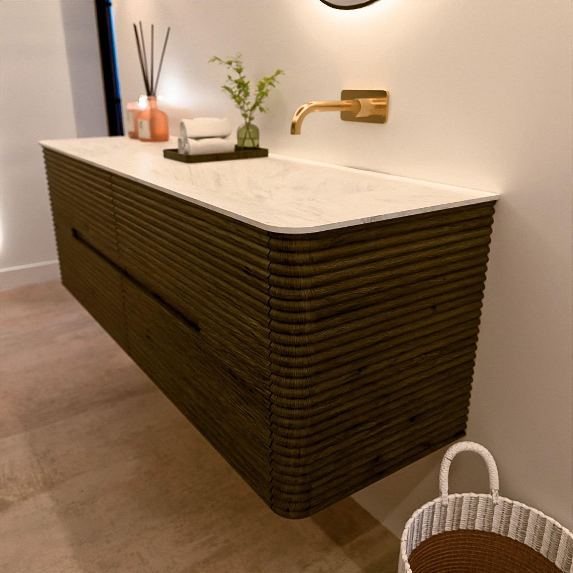 Le meuble de salle de bain CIRO-DLUX a été développé pour ceux qui choisissent un design moderne, des matériaux naturels et une fonctionnalité de haute qualité. Avec des dimensions allant de 70 cm à 190 cm, la gamme CIRO-DLUX s’intègre facilement aussi bien dans les salles de bain compactes que dans les grands espaces de design. Chaque meuble est une combinaison équilibrée d’esthétique, de savoir-faire et de qualité durable.