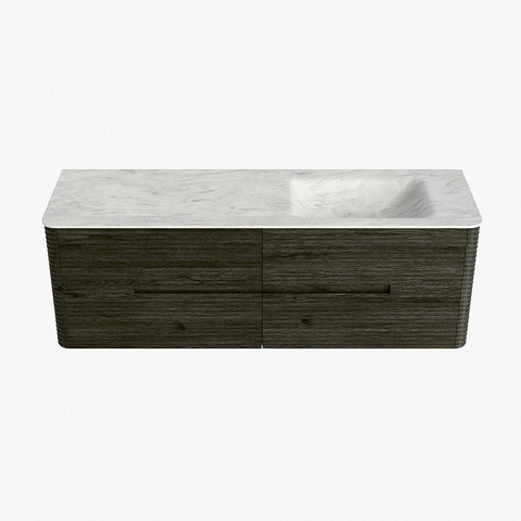 Mondiaz CIRO-DLUX Meuble de salle de bains - 150x45x50cm - plan-vasque en solid surface Opalo - 1 vasque à droite - sans trous de robinetterie - 4 tiroirs - Shadow