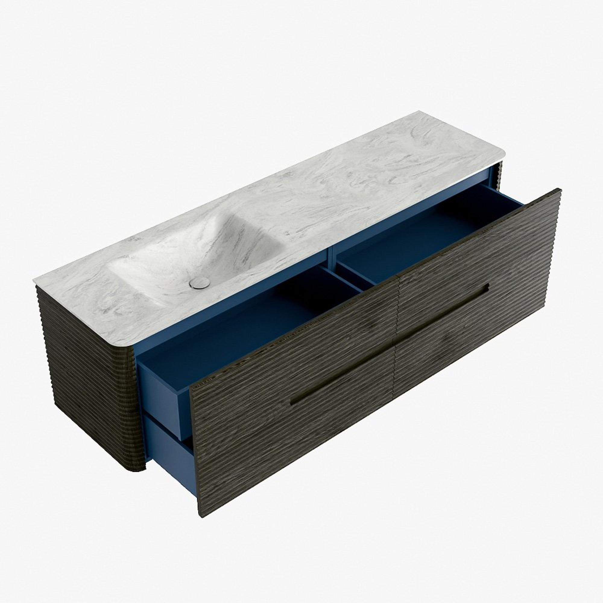 La praticité est un élément essentiel de la gamme CIRO. Le meuble dispose d’un grand tiroir avec un tiroir intérieur supplémentaire, idéal pour ranger de manière organisée tous les articles quotidiens de la salle de bain. Grâce à la poignée intégrée et au mécanisme de fermeture douce, la façade reste sobre, élégante et épurée.