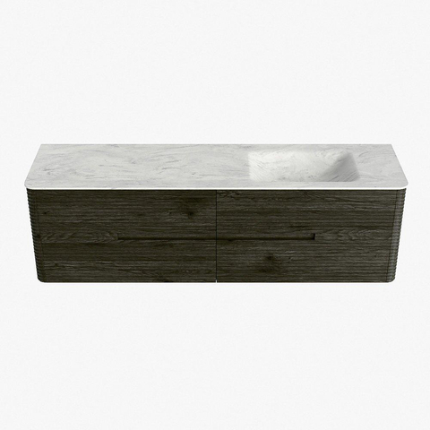Mondiaz CIRO-DLUX Meuble de salle de bains - 170x45x50cm - Plan vasque solid surface Opalo - 1 lavabo à droite - 1 trou de robinet - 4 tiroirs - Shadow