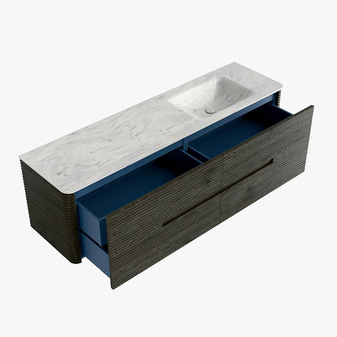Mondiaz CIRO-DLUX Ensemble de meubles de salle de bains - 170x45x50cm - plan vasque Solid surface Opalo - 1 vasque à droite - sans trous de robinet - 4 tiroirs - Shadow