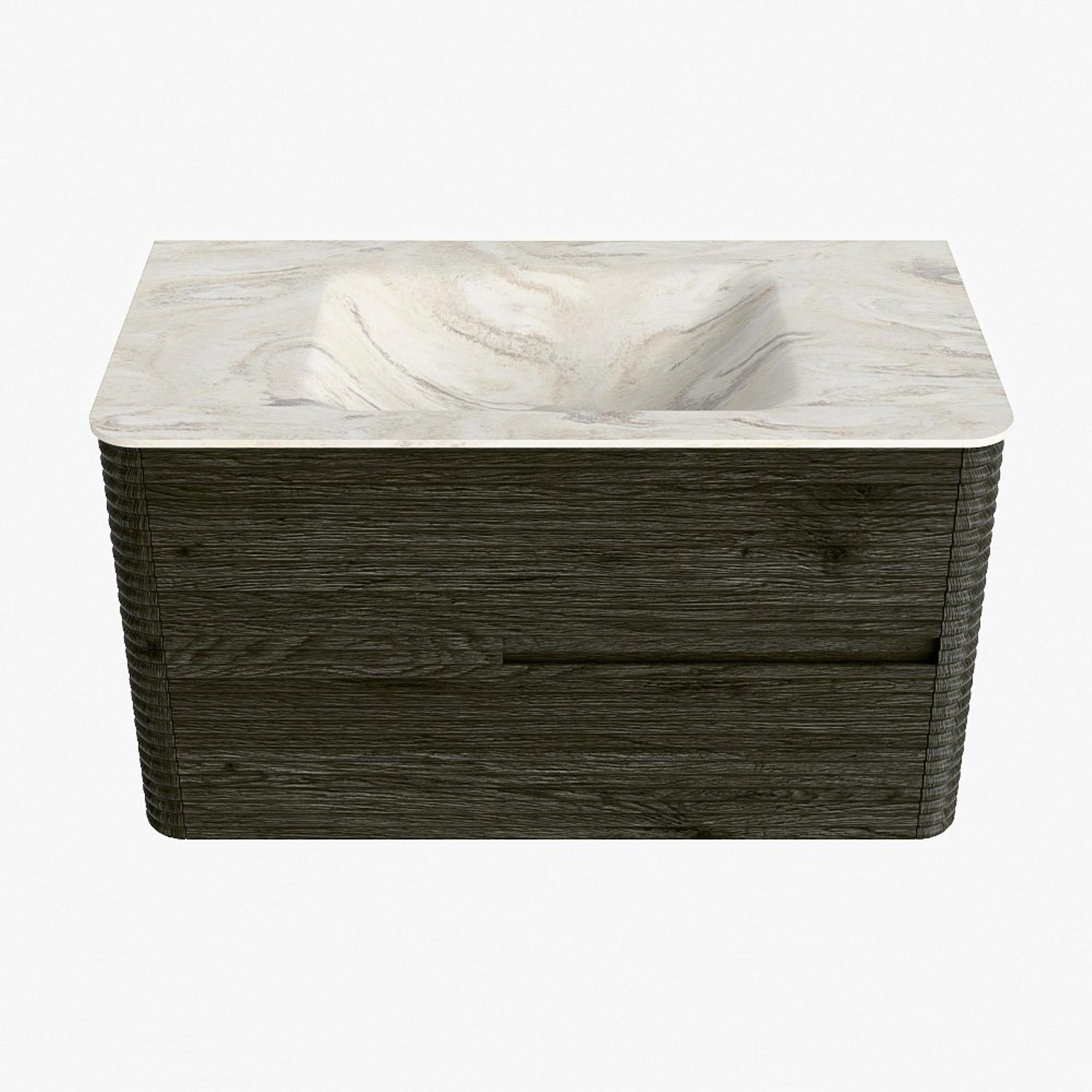 Mondiaz CIRO-DLUX Meuble de salle de bains - 90x45x50cm - Vasque solid surface Ostra - 1 lavabo au centre - 1 trou de robinet - 2 tiroirs - Shadow