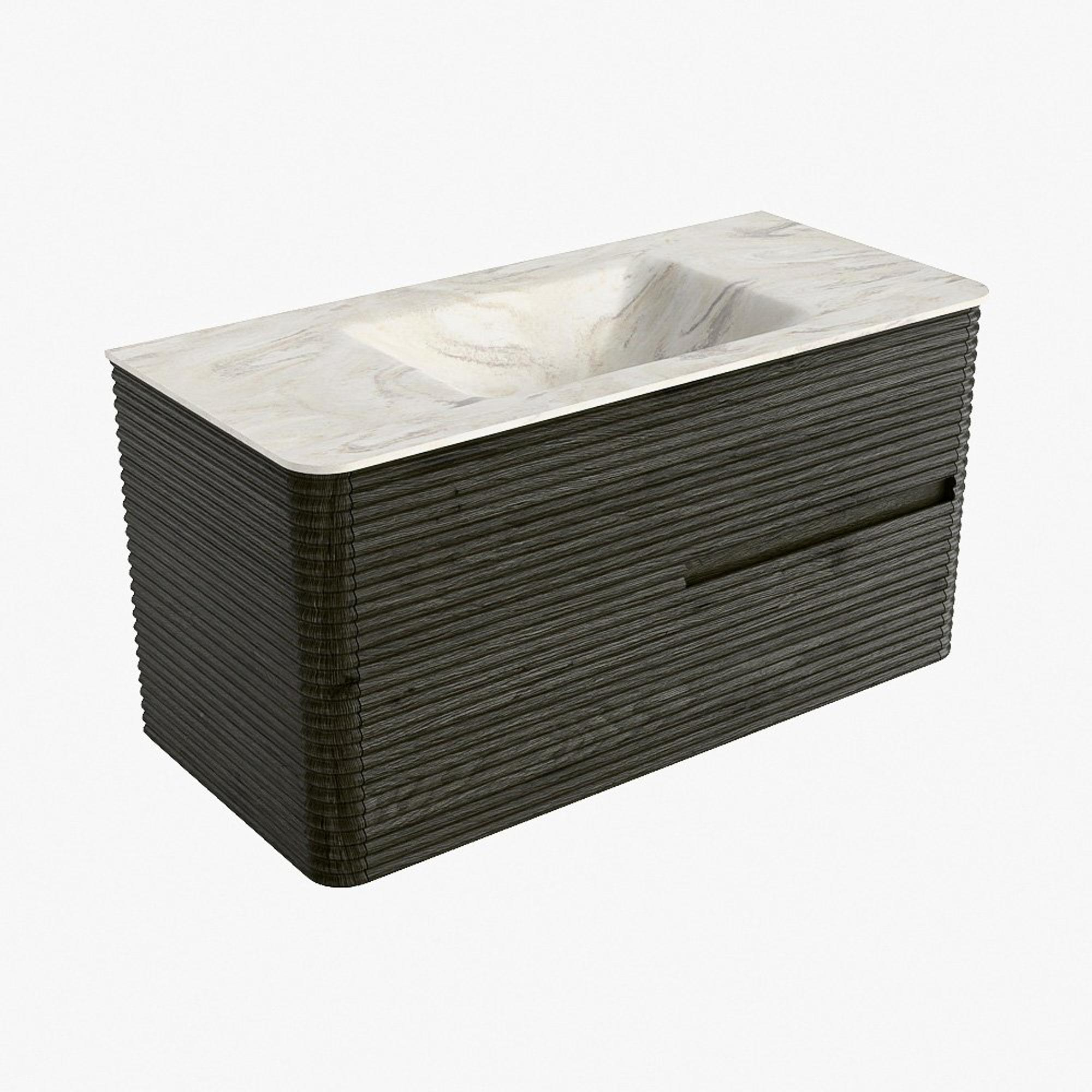 Mondiaz CIRO-DLUX Meuble de salle de bains - 100x45x50cm - Plan vasque Solid surface Ostra - 1 vasque au milieu - 1 trou de robinetterie - 2 tiroirs - Shadow