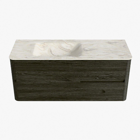 Mondiaz CIRO-DLUX Meuble de salle de bains - 120x45x50cm - Plan vasque solid surface Ostra - 1 lavabo à gauche - 1 trou de robinet - 2 tiroirs - Shadow