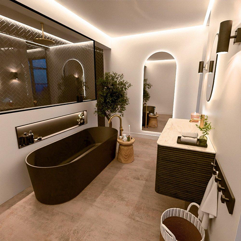 Les vasques de la ligne CIRO-DLUX sont fabriquées en Solid Surface de haute qualité, un matériau reconnu pour son aspect épuré, ses propriétés hygiéniques et son excellente durabilité. Elles sont disponibles en 11 teintes de marbre et de travertin, alliant le caractère luxueux de la pierre naturelle aux avantages du Solid Surface. La forme organique de la cuve renforce le caractère serein et sculptural du design.