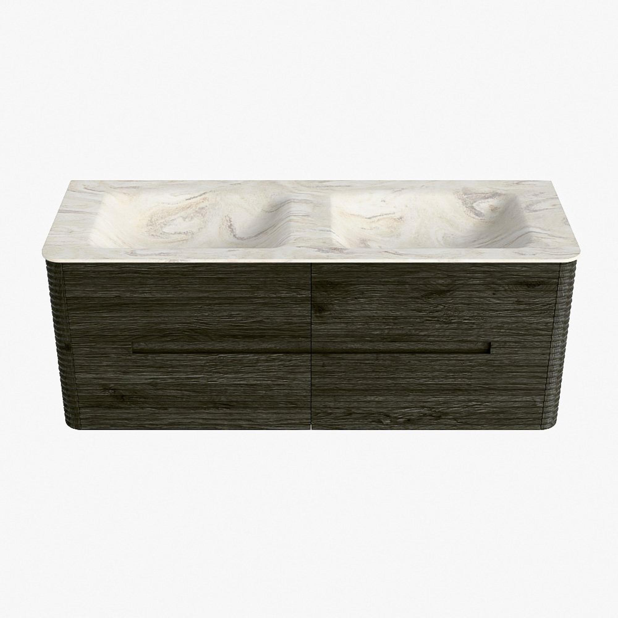 Mondiaz CIRO-DLUX Ensemble de meubles de salle de bains - 130x45x50cm - Plan vasque solid surface Ostra - 2 vasques double - sans trous de robinetterie - 4 tiroirs - Shadow