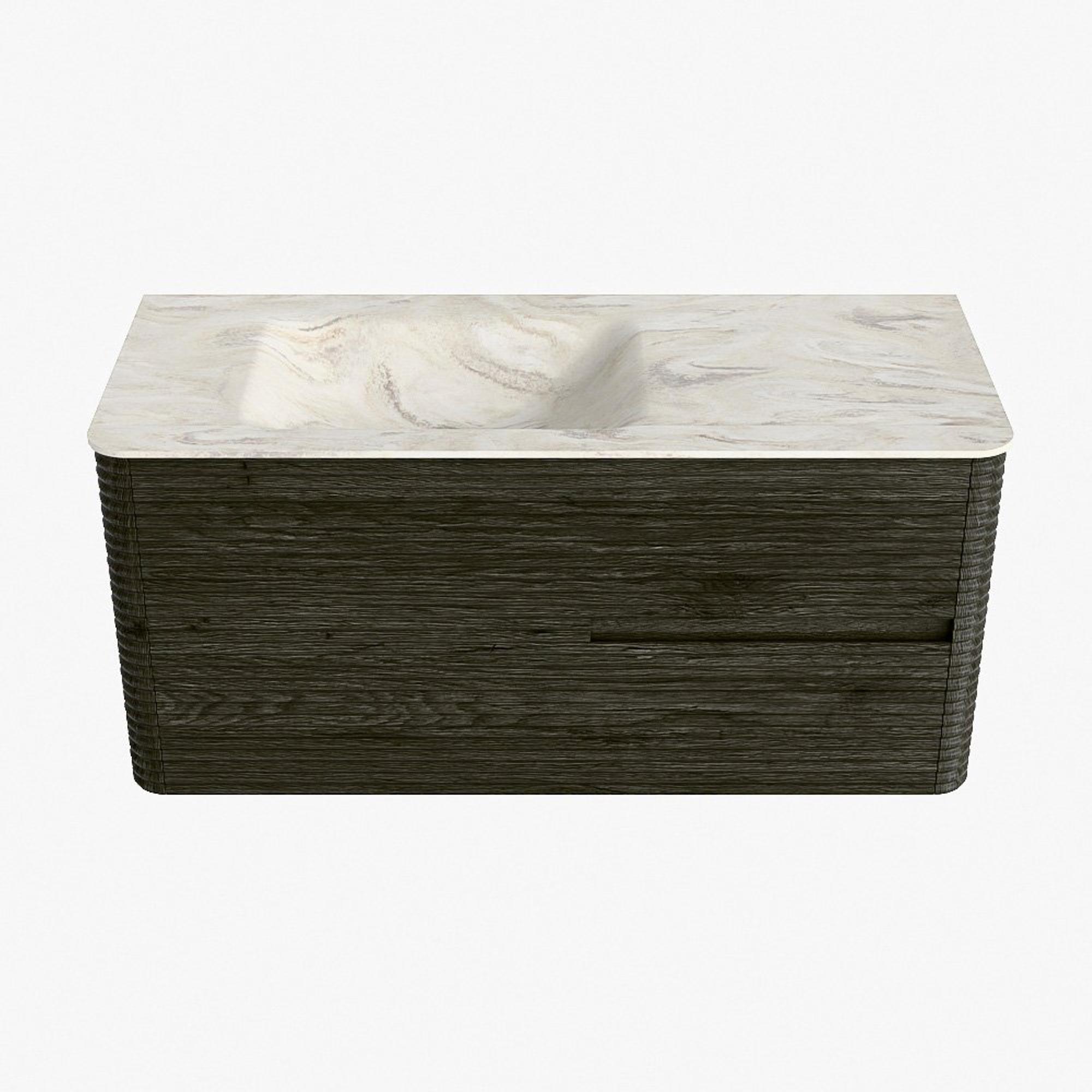 Mondiaz CIRO-DLUX Ensemble de meubles de salle de bains - 110x45x50cm - Plan-vasque Solid surface Ostra - 1 vasque à gauche - sans trous de robinet - 2 tiroirs - Shadow