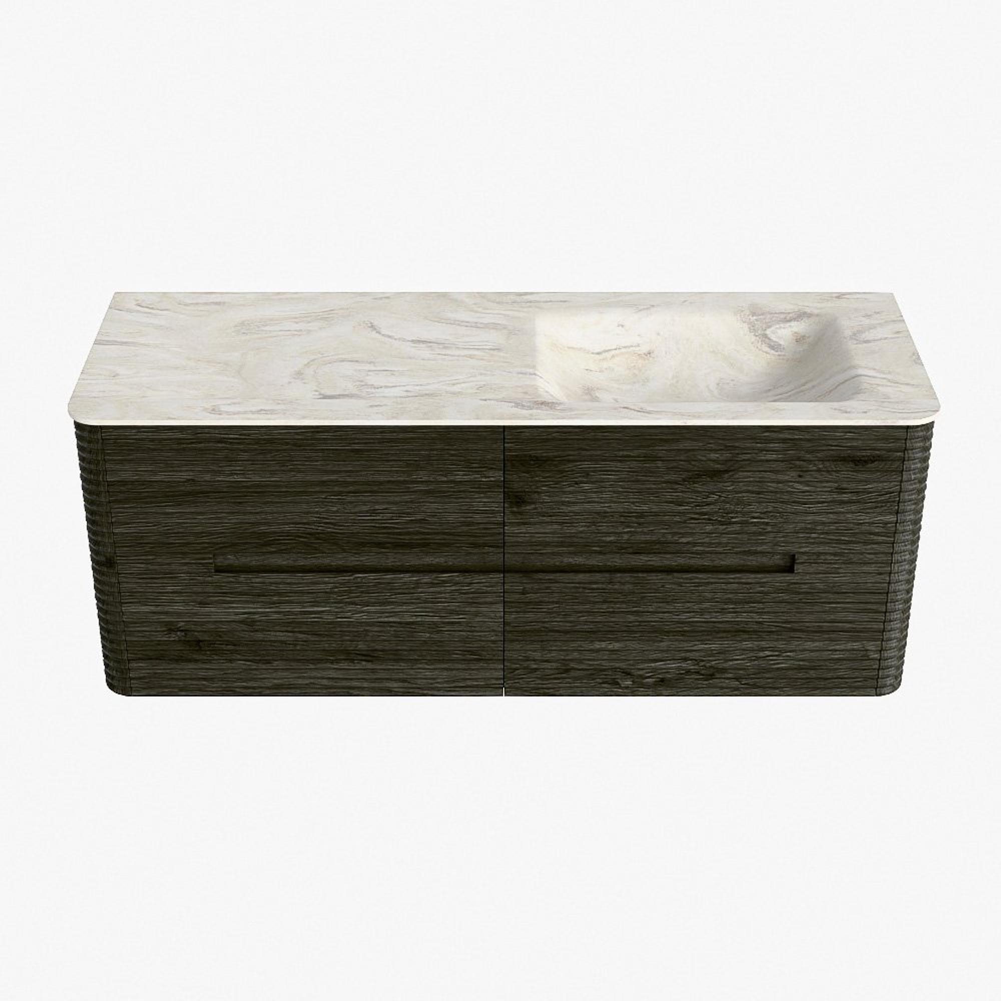 Mondiaz CIRO-DLUX Meuble de salle de bains - 130x45x50cm - Plan vasque solid surface Ostra - 1 vasque à droite - sans trous de robinet - 4 tiroirs - Shadow