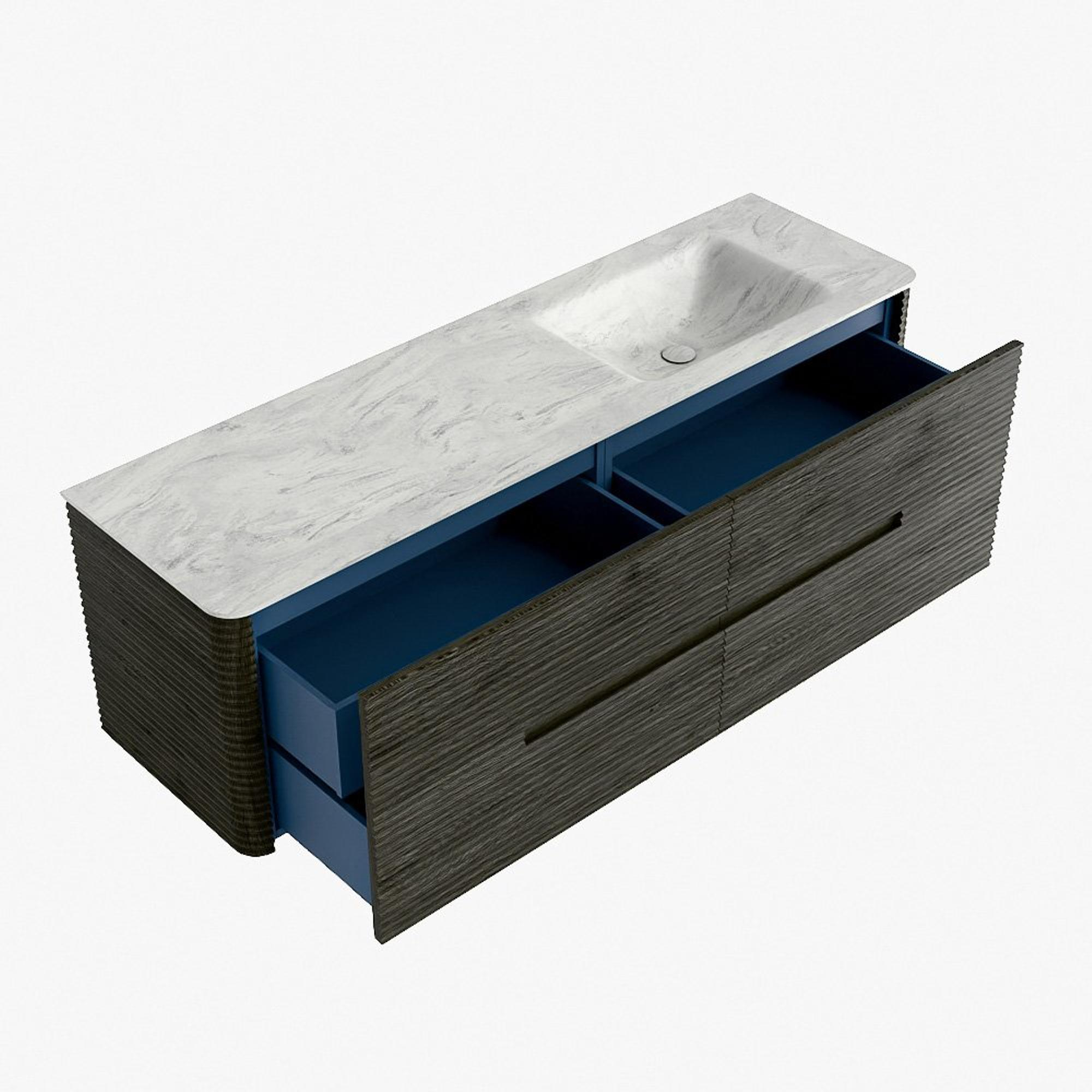 Mondiaz CIRO-DLUX Ensemble de meubles de salle de bains - 160x45x50cm - Vasque en solid surface Opalo - 1 lavabo à droite - 1 trou de robinet - 4 tiroirs - Shadow