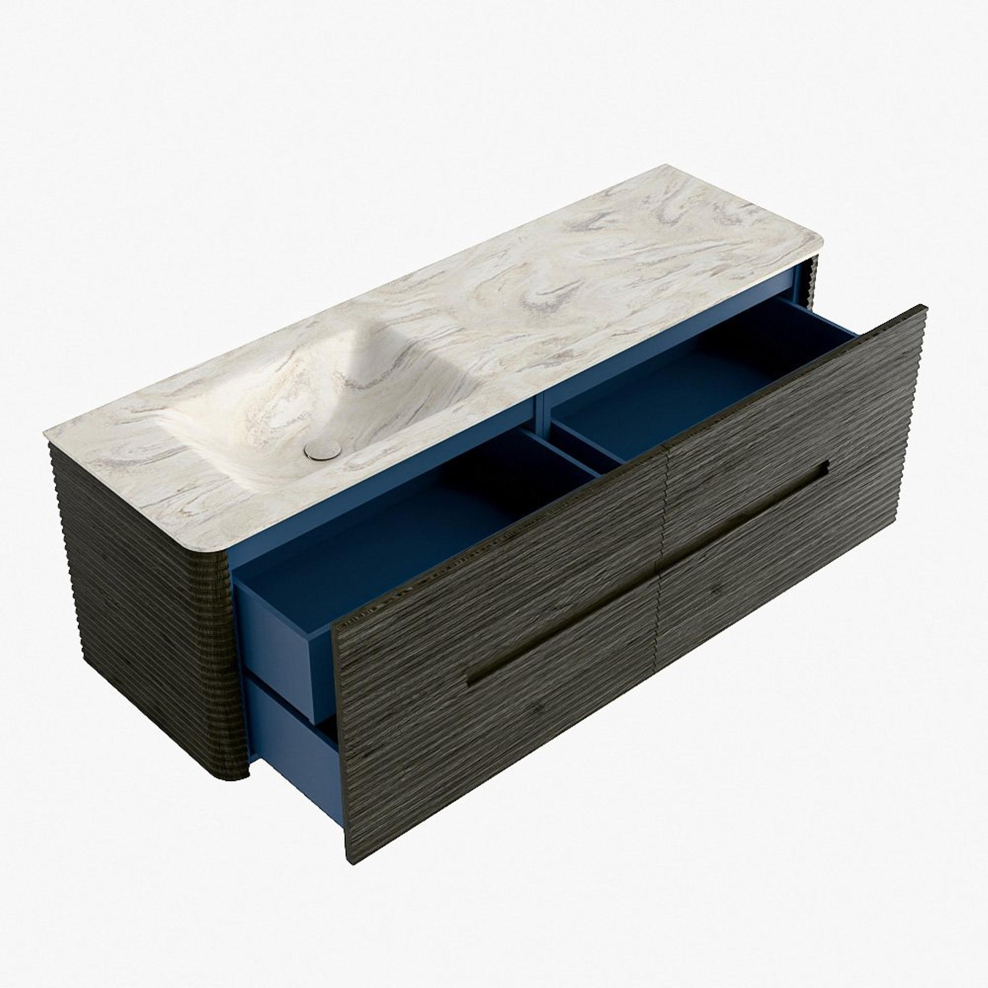 La praticité est un élément essentiel de la gamme CIRO. Le meuble dispose d’un grand tiroir avec un tiroir intérieur supplémentaire, idéal pour ranger de manière organisée tous les articles quotidiens de la salle de bain. Grâce à la poignée intégrée et au mécanisme de fermeture douce, la façade reste sobre, élégante et épurée.