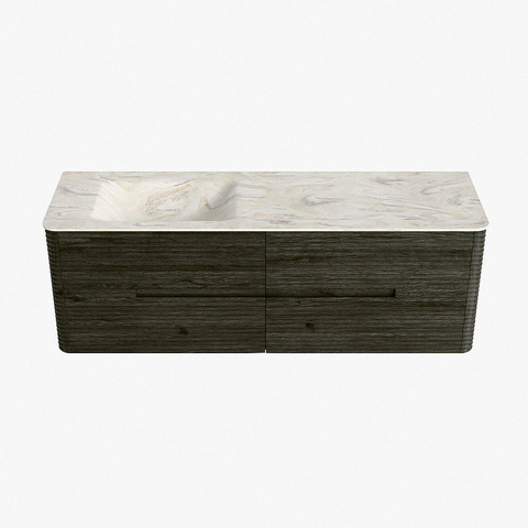 Mondiaz CIRO-DLUX Ensemble de meubles de salle de bains - 150x45x50cm - Plan vasque solid surface Ostra - 1 vasque à gauche - 1 trou de robinet - 4 tiroirs - Shadow