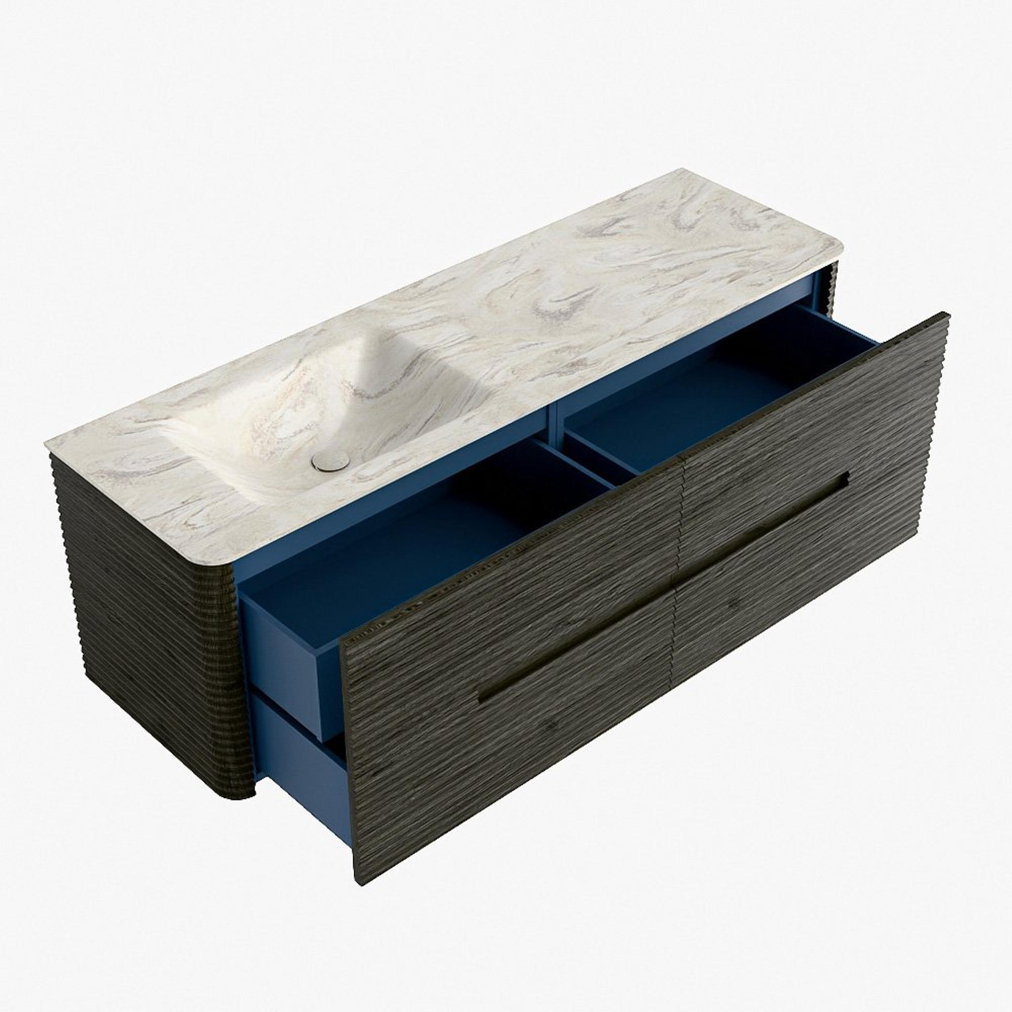 Mondiaz CIRO-DLUX Ensemble de meubles de salle de bains - 150x45x50cm - vasque en solid surface Ostra - 1 lavabo à gauche - sans trous de robinet - 4 tiroirs - Shadow