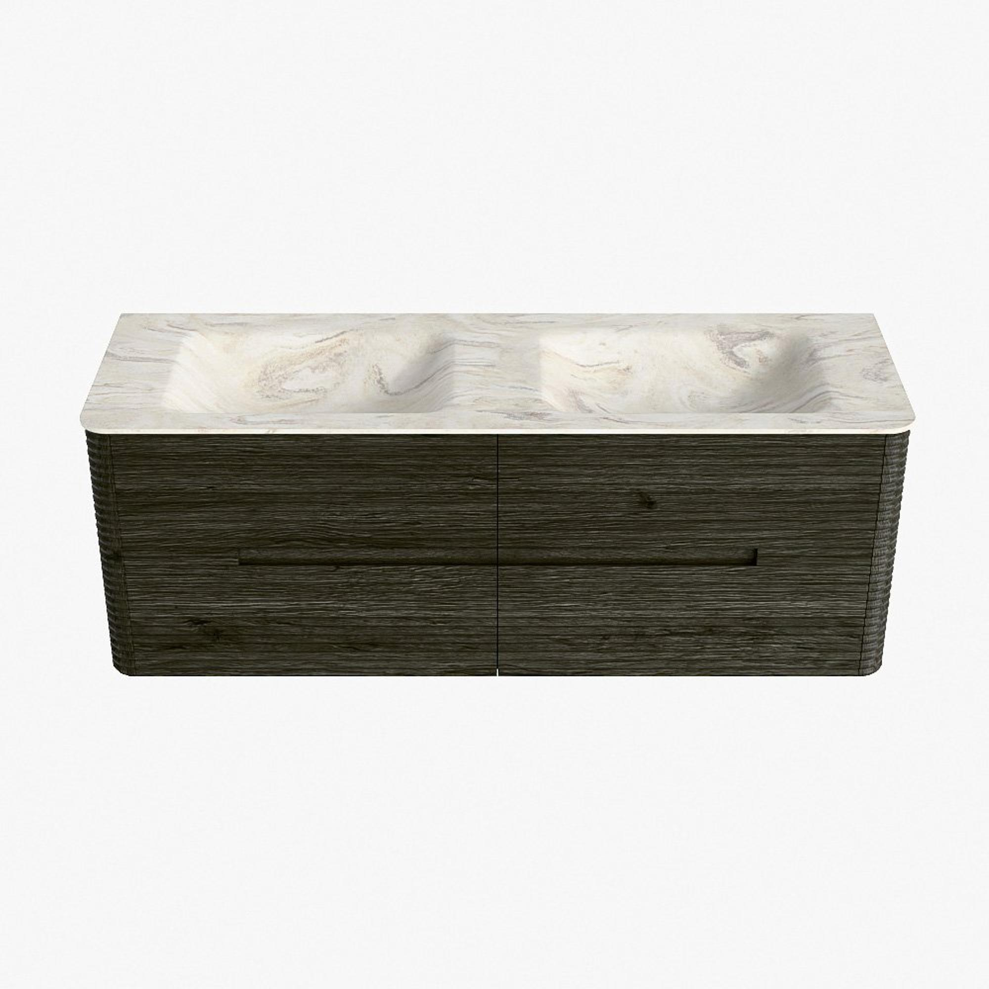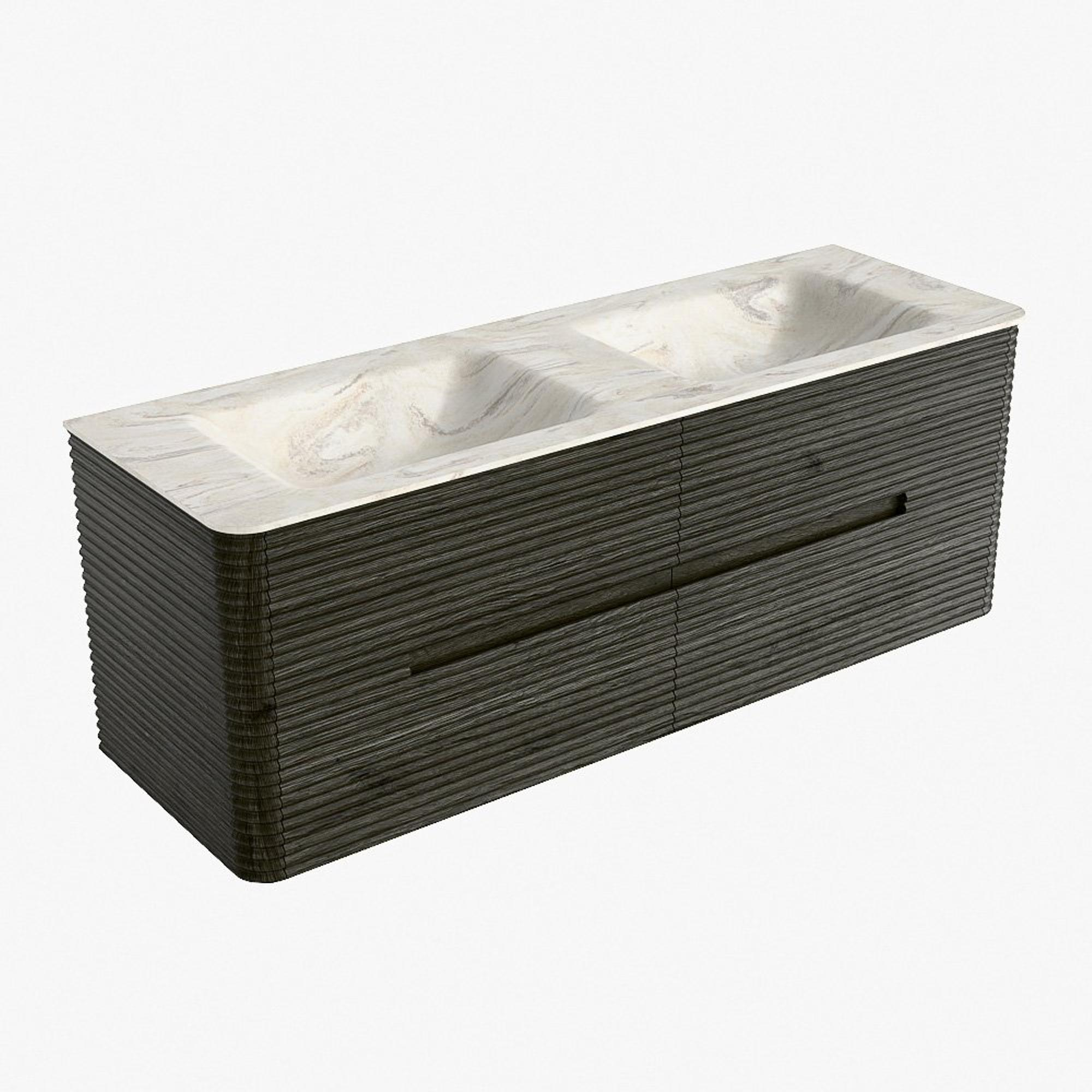 Mondiaz CIRO-DLUX Ensemble de meubles de salle de bains - 140x45x50cm - Plan vasque en solid surface Ostra - 2 vasques double - 2 trous de robinetterie - 4 tiroirs - Shadow