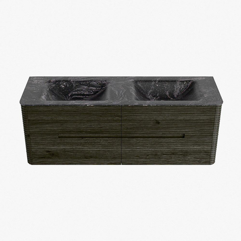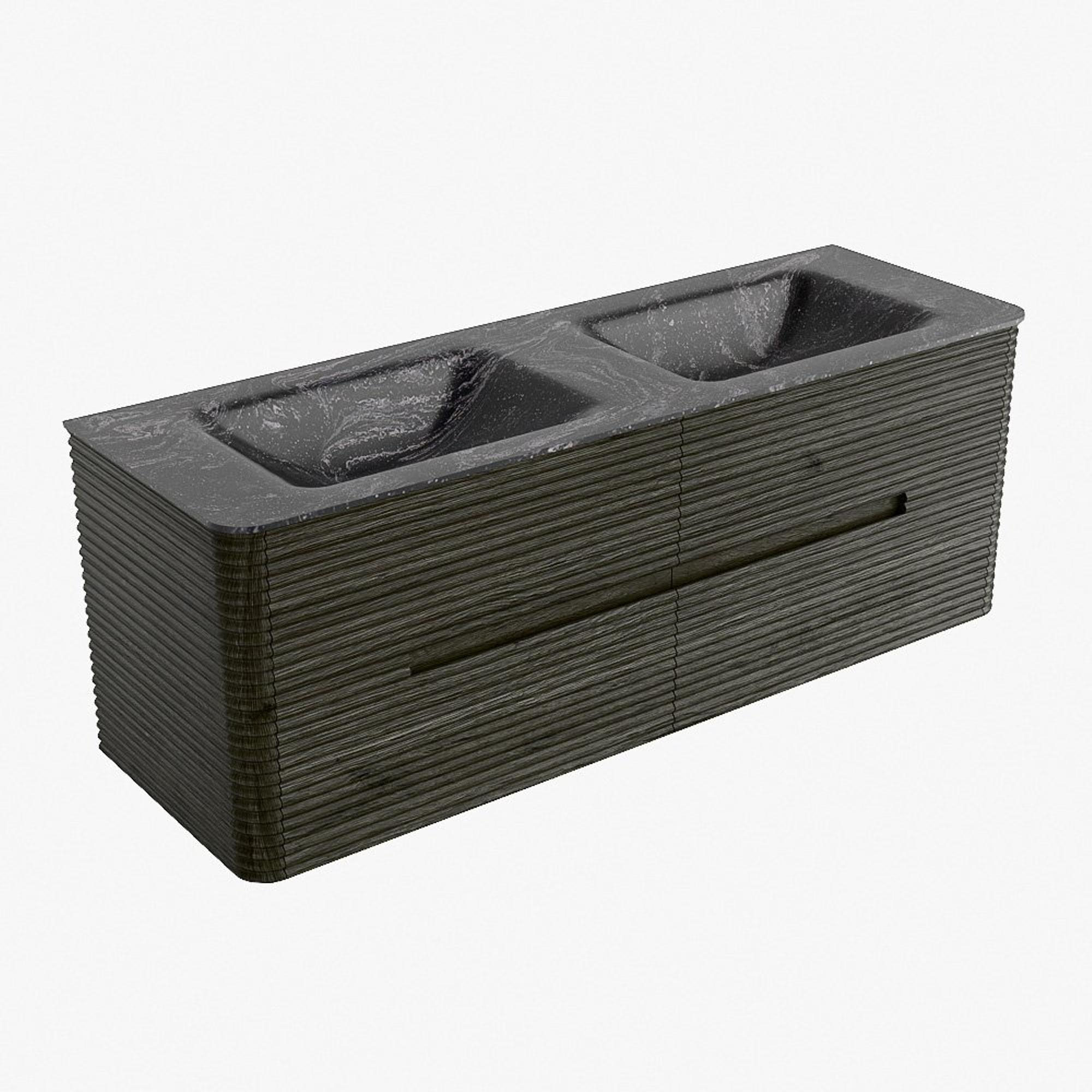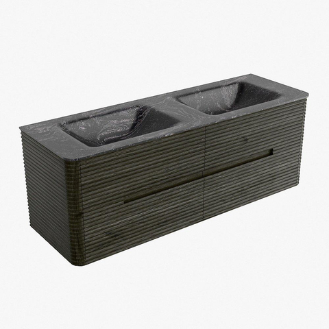 Mondiaz CIRO-DLUX Ensemble de meubles de salle de bains - 140x45x50cm - Vasque en solid surface Lava - 2 lavabos Double - sans trous de robinet - 4 tiroirs - Shadow