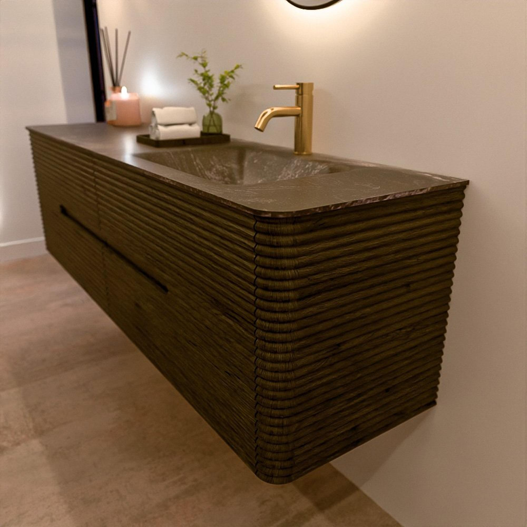 Le meuble de salle de bain CIRO-DLUX a été développé pour ceux qui choisissent un design moderne, des matériaux naturels et une fonctionnalité de haute qualité. Avec des dimensions allant de 70 cm à 190 cm, la gamme CIRO-DLUX s’intègre facilement aussi bien dans les salles de bain compactes que dans les grands espaces de design. Chaque meuble est une combinaison équilibrée d’esthétique, de savoir-faire et de qualité durable.