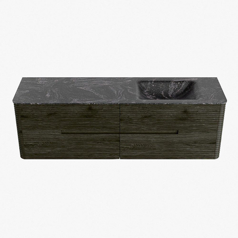 Mondiaz CIRO-DLUX Ensemble de meubles de salle de bains - 160x45x50cm - plan-vasque Solid surface Lava - 1 vasque à droite - sans trous de robinet - 4 tiroirs - Shadow
