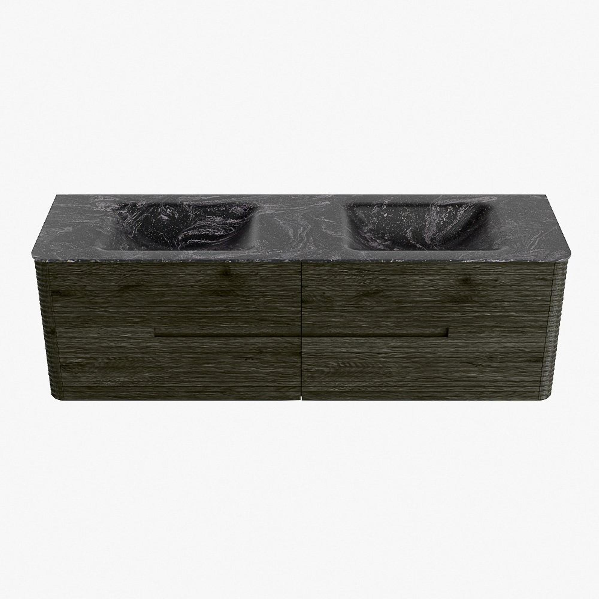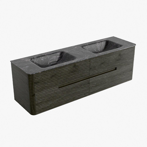 Mondiaz CIRO-DLUX Meuble de salle de bains - 160x45x50cm - Lavabo en solid surface Lava - 2 vasques Double - 2 trous de robinet - 4 tiroirs - Shadow