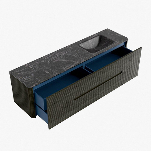 Mondiaz CIRO-DLUX Meuble de salle de bains - 180x45x50cm - Plan vasque solid surface Lava - 1 lavabo à droite - 1 trou de robinetterie - 4 tiroirs - Shadow