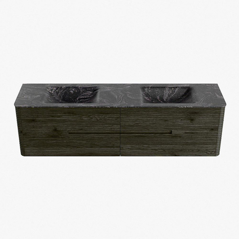 Mondiaz CIRO-DLUX Ensemble de meubles de salle de bains - 180x45x50cm - lavabo Solid surface Lava - 2 bassins Double - sans trous de robinet - 4 tiroirs - Shadow