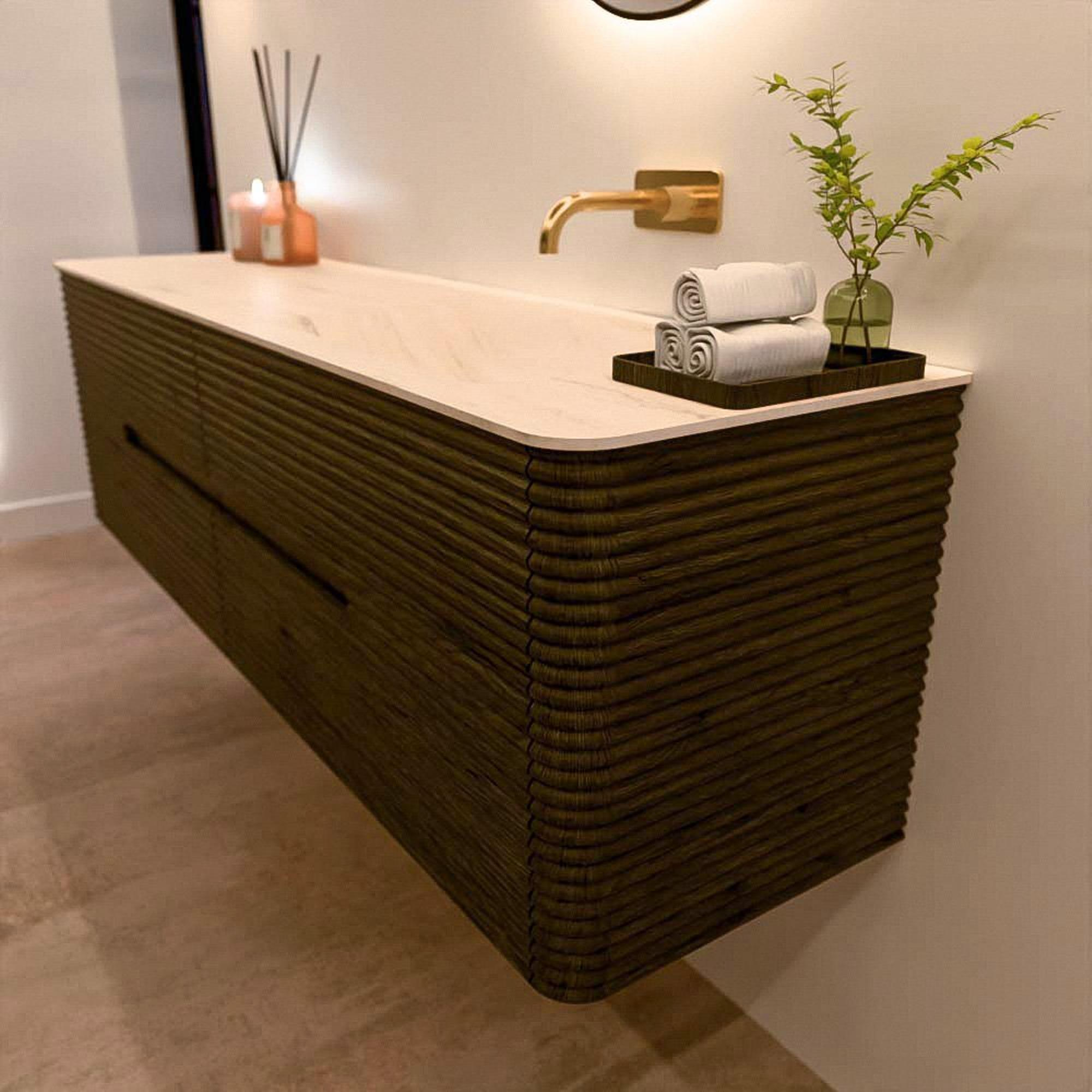 Le meuble de salle de bain CIRO-DLUX a été développé pour ceux qui choisissent un design moderne, des matériaux naturels et une fonctionnalité de haute qualité. Avec des dimensions allant de 70 cm à 190 cm, la gamme CIRO-DLUX s’intègre facilement aussi bien dans les salles de bain compactes que dans les grands espaces de design. Chaque meuble est une combinaison équilibrée d’esthétique, de savoir-faire et de qualité durable.