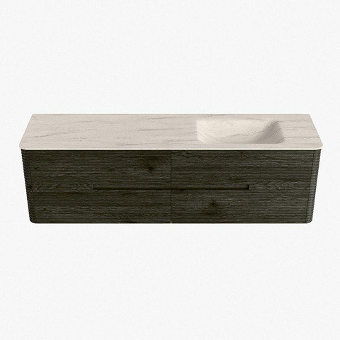 Mondiaz CIRO-DLUX Meuble de salle de bains - 170x45x50cm - Plan-vasque solid surface Meli - 1 lavabo à droite - sans trous de robinetterie - 4 tiroirs - Shadow