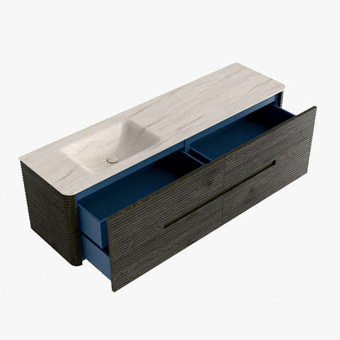 Mondiaz CIRO-DLUX Ensemble de meubles de salle de bains - 170x45x50cm - lavabo solid surface Meli - 1 vasque à gauche - sans trous de robinet - 4 tiroirs - Shadow