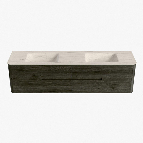 Mondiaz CIRO-DLUX Ensemble de meubles de salle de bains - 190x45x50cm - Plan vasque solid surface Meli - 2 vasques double - 2 trous de robinet - 4 tiroirs - Shadow