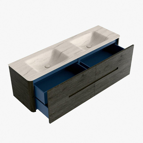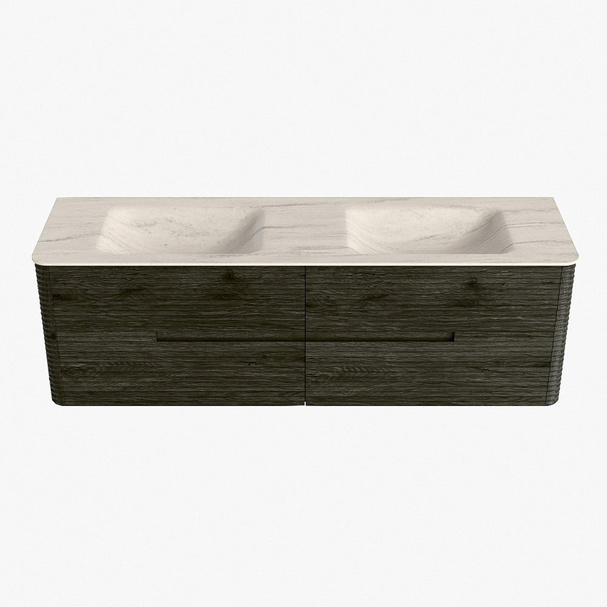 Mondiaz CIRO-DLUX Ensemble de meubles de salle de bains - 160x45x50cm - Plan vasque Solid surface Meli - 2 vasques Double - 2 trous de robinet - 4 tiroirs - Shadow