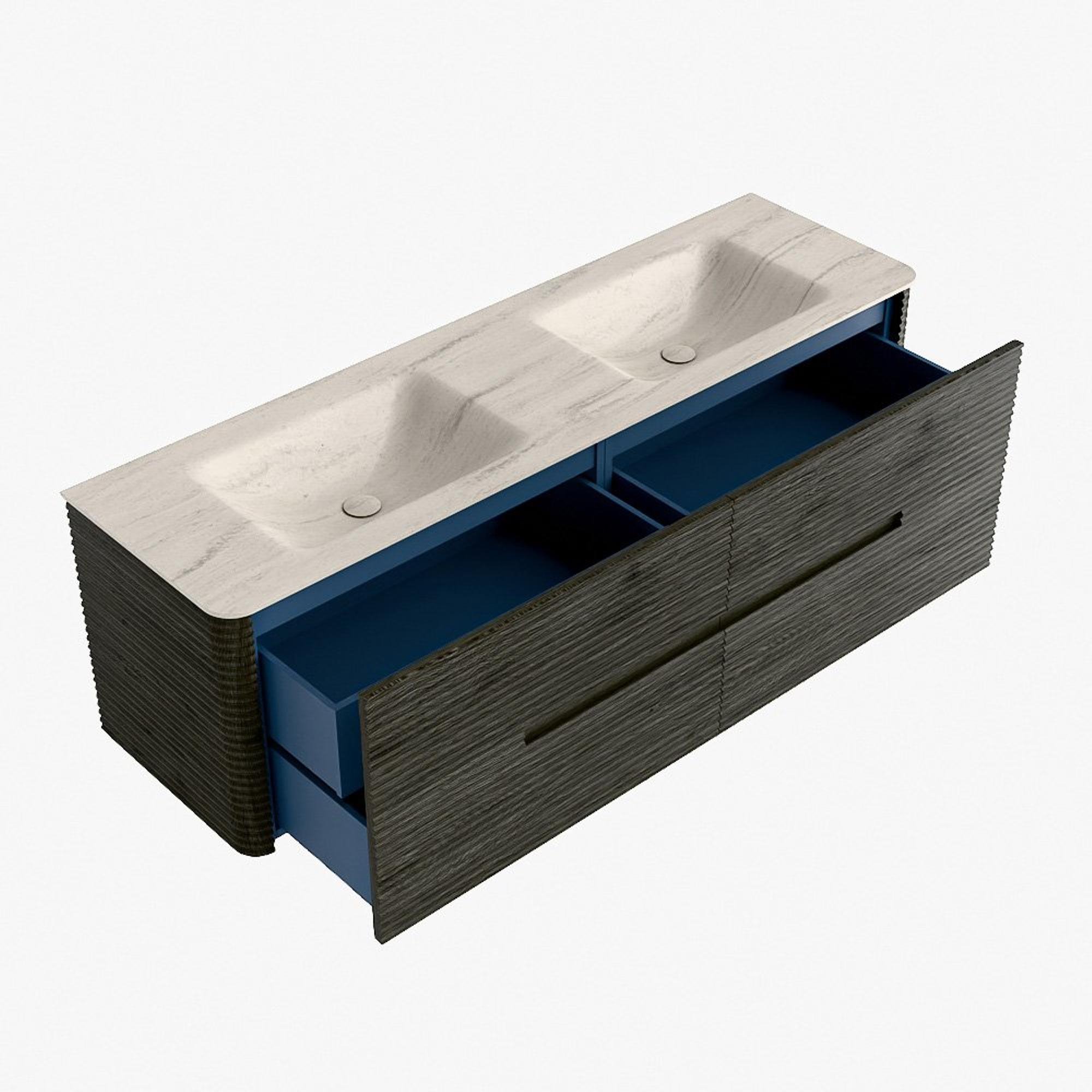 La praticité est un élément essentiel de la gamme CIRO. Le meuble dispose d’un grand tiroir avec un tiroir intérieur supplémentaire, idéal pour ranger de manière organisée tous les articles quotidiens de la salle de bain. Grâce à la poignée intégrée et au mécanisme de fermeture douce, la façade reste sobre, élégante et épurée.