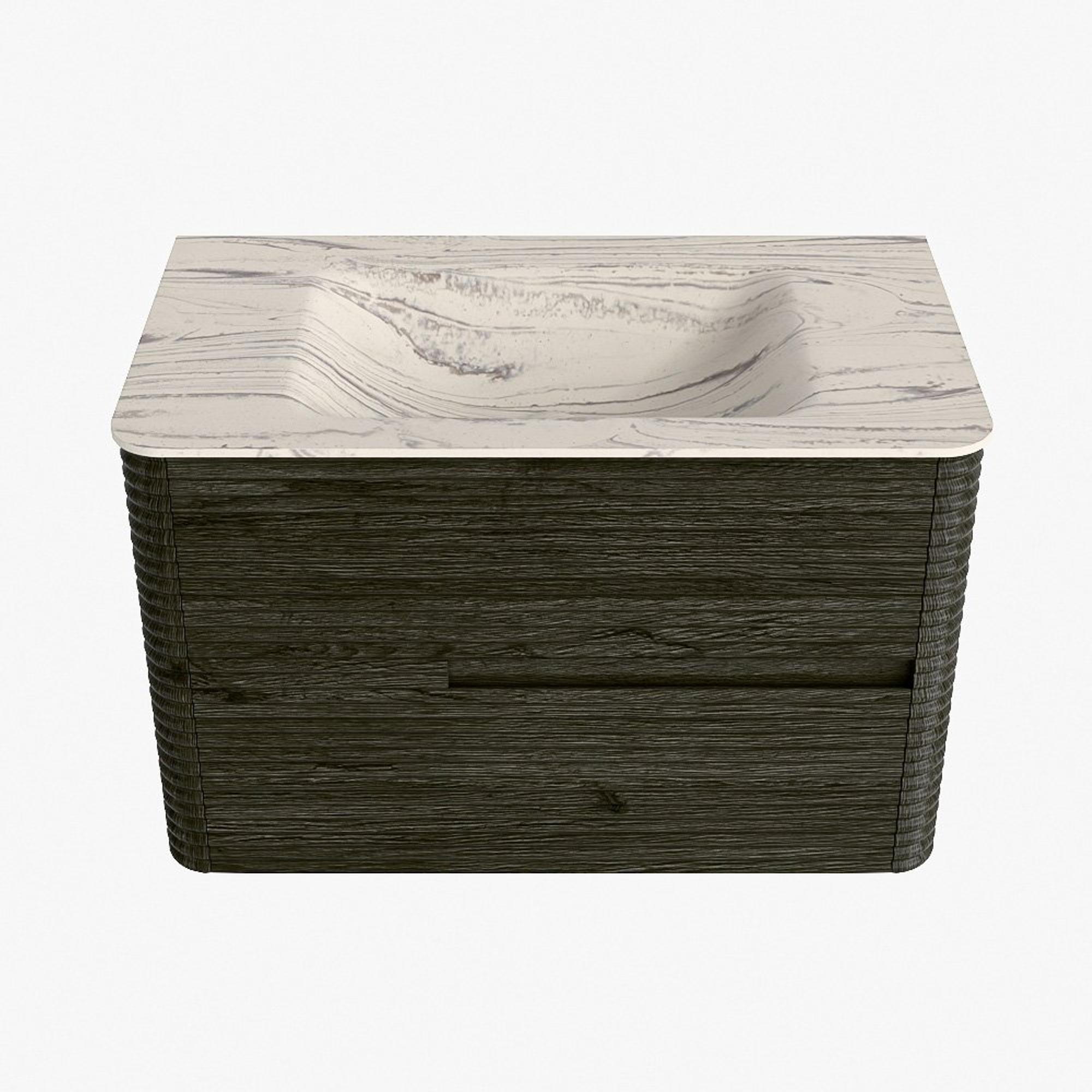 Mondiaz CIRO-DLUX Meuble de salle de bains - 80x45x50cm - Plan vasque solid surface Nata - 1 vasque au milieu - 1 trou de robinetterie - 2 tiroirs - Shadow