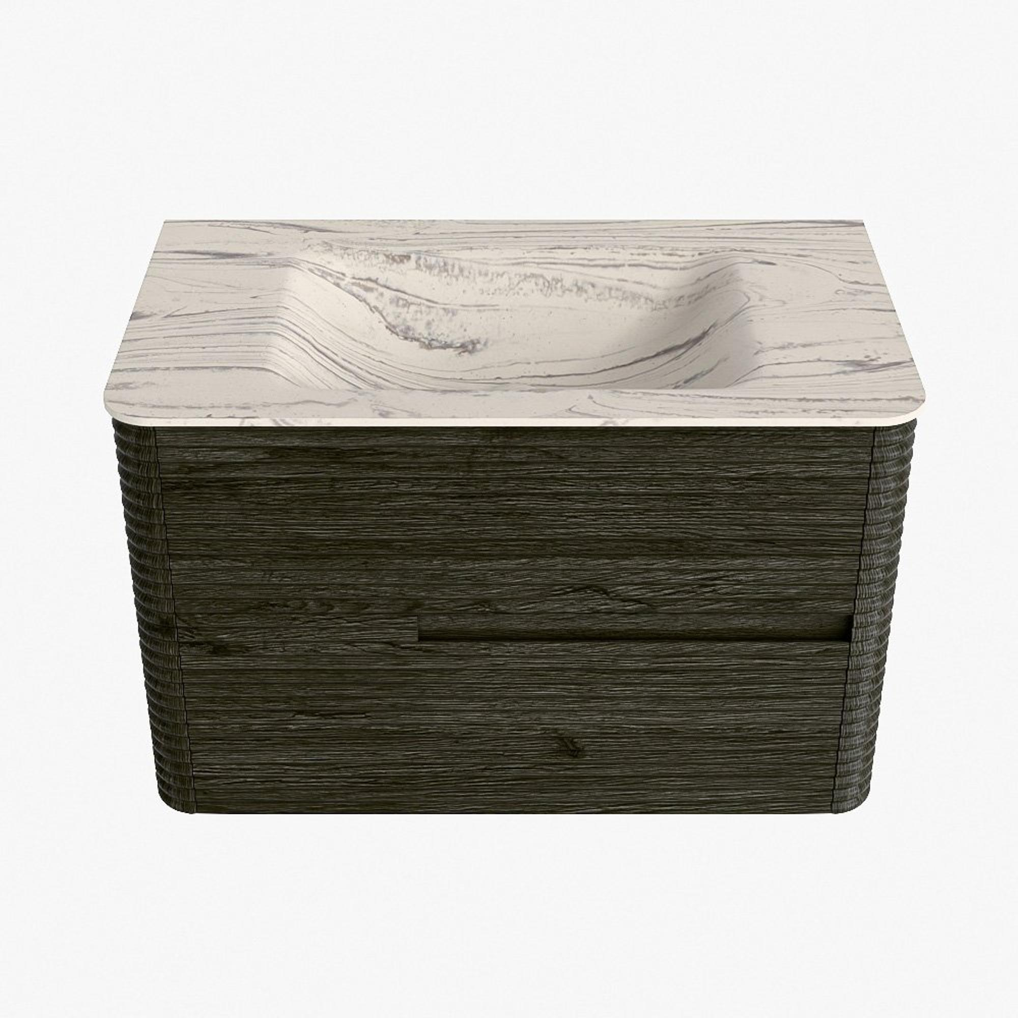 Mondiaz CIRO-DLUX Ensemble de meubles de salle de bains - 80x45x50cm - plan-vasque solid surface Nata - 1 vasque centrale - sans trous de robinet - 2 tiroirs - Shadow