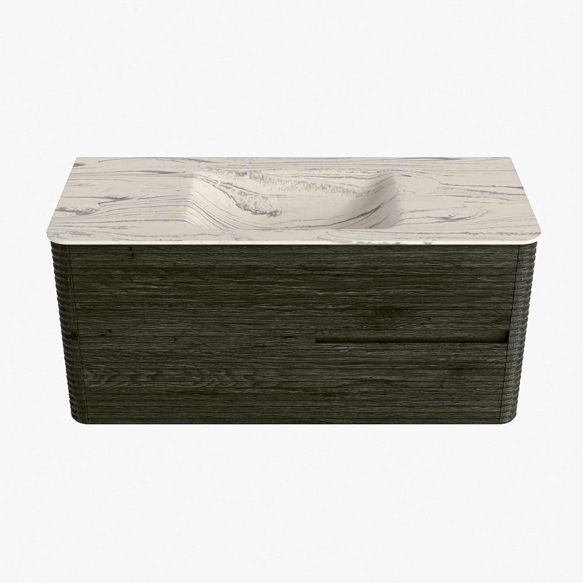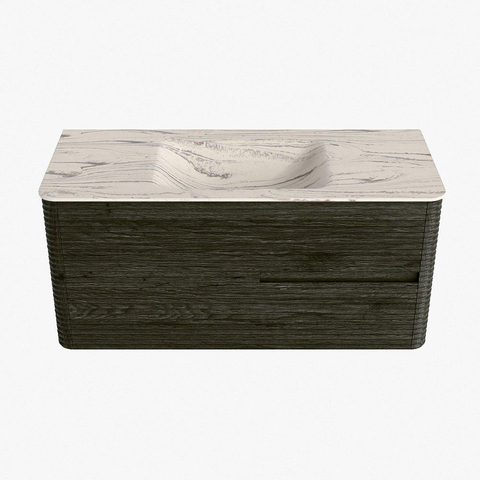 Mondiaz CIRO-DLUX Meuble de salle de bains - 110x45x50cm - Plan vasque solid surface Nata - 1 vasque au milieu - 1 trou de robinet - 2 tiroirs - Shadow