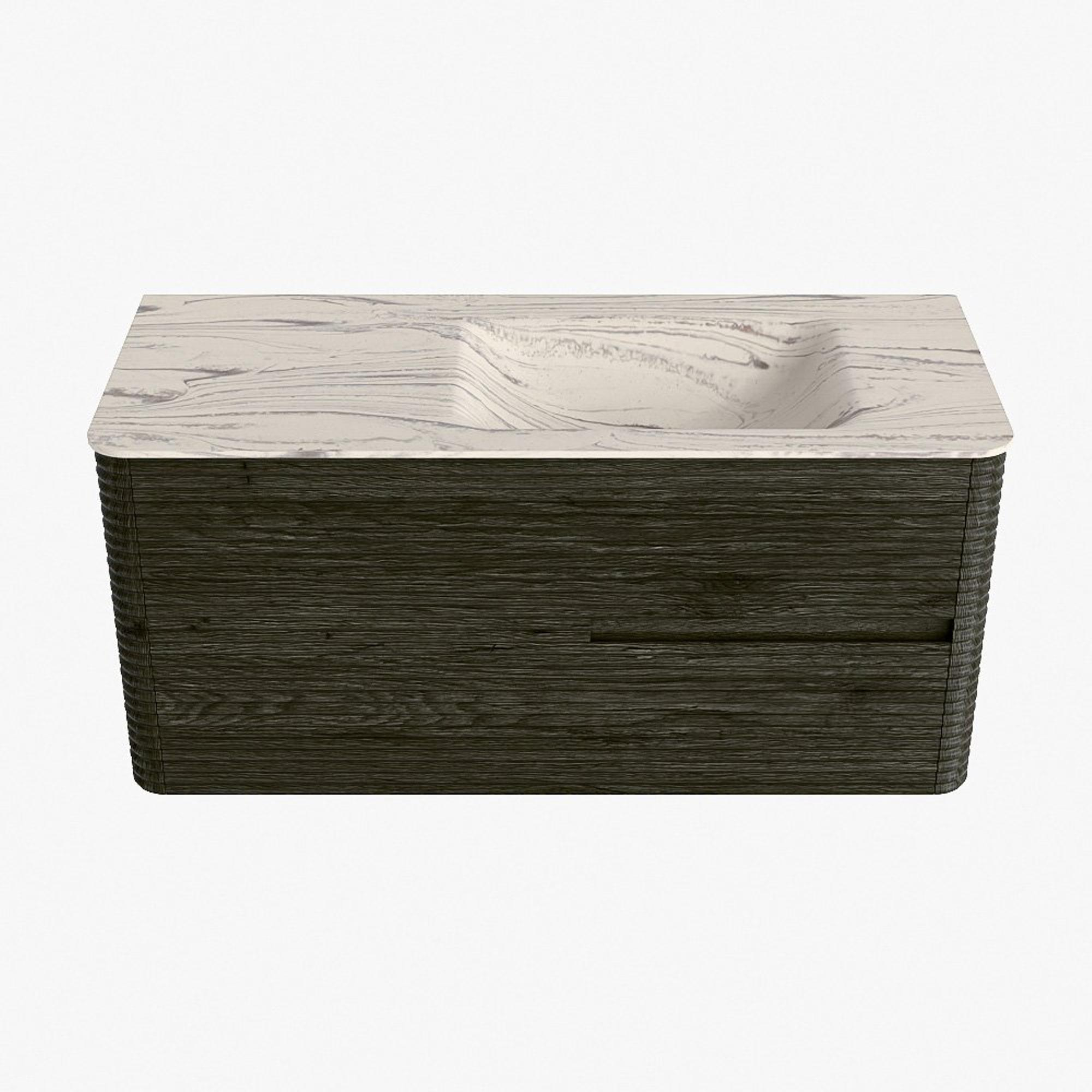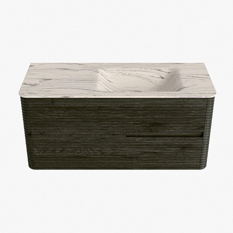Mondiaz CIRO-DLUX Meuble de salle de bains - 110x45x50cm - Plan-vasque en solid surface Nata - 1 lavabo à droite - 1 trou de robinet - 2 tiroirs - Shadow