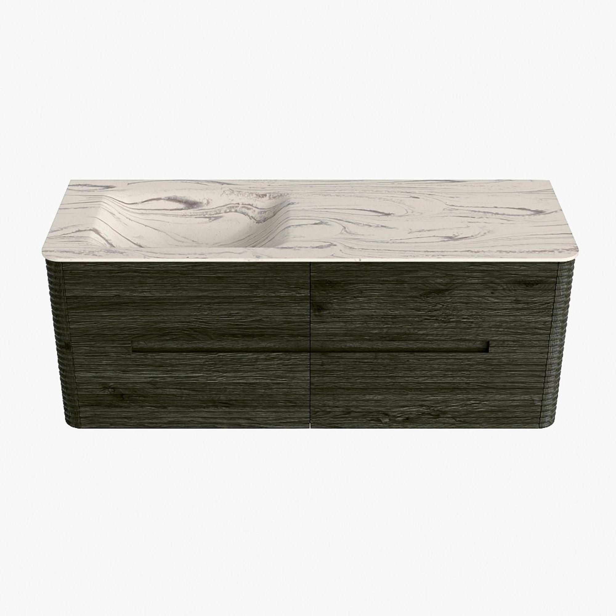 Mondiaz CIRO-DLUX Ensemble de meubles de salle de bains - 130x45x50cm - lavabo solid surface Nata - 1 bassin à gauche - sans trous de robinet - 4 tiroirs - Shadow