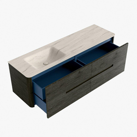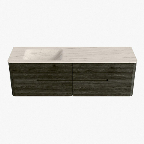 Mondiaz CIRO-DLUX Meuble de salle de bains - 160x45x50cm - Plan-vasque solid surface Meli - 1 lavabo à gauche - sans trous de robinet - 4 tiroirs - Shadow