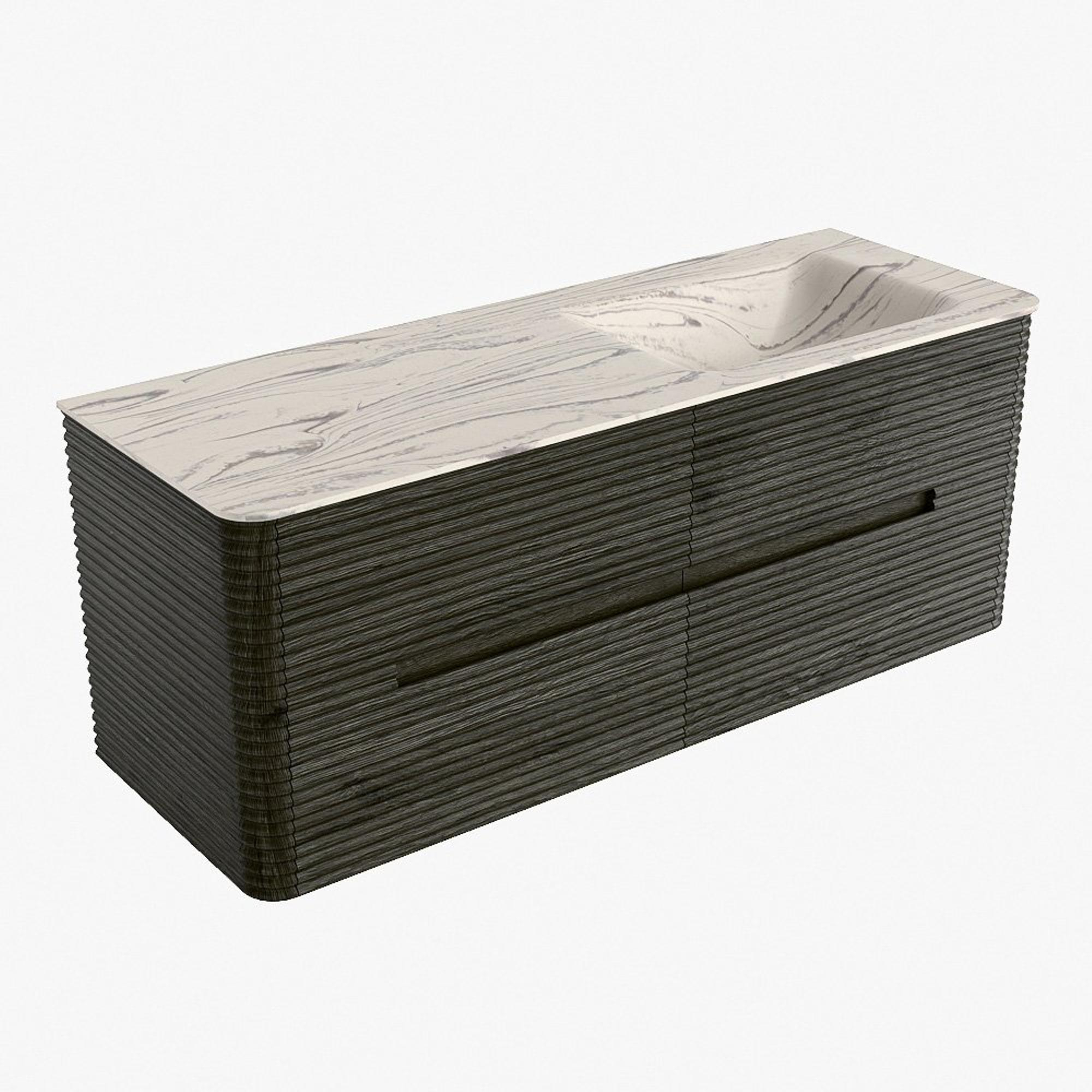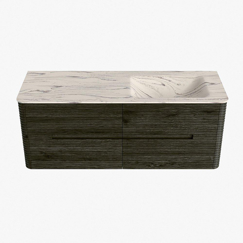 Mondiaz CIRO-DLUX Ensemble de meubles de salle de bains - 130x45x50cm - Plan vasque Solid Surface Nata - 1 vasque à droite - sans trous de robinet - 4 tiroirs - Shadow