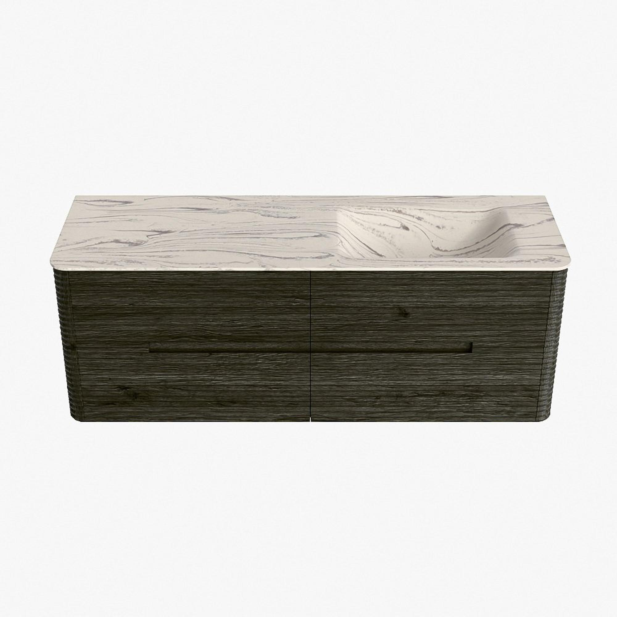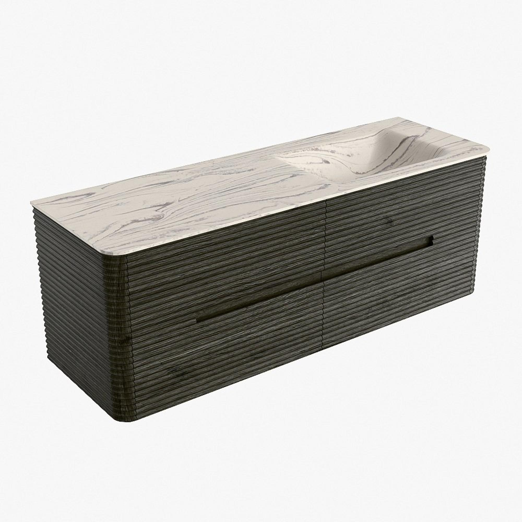 Mondiaz CIRO-DLUX Meuble de salle de bains - 140x45x50cm - Plan de toilette en solid surface Nata - 1 vasque à droite - sans trous de robinet - 4 tiroirs - Shadow