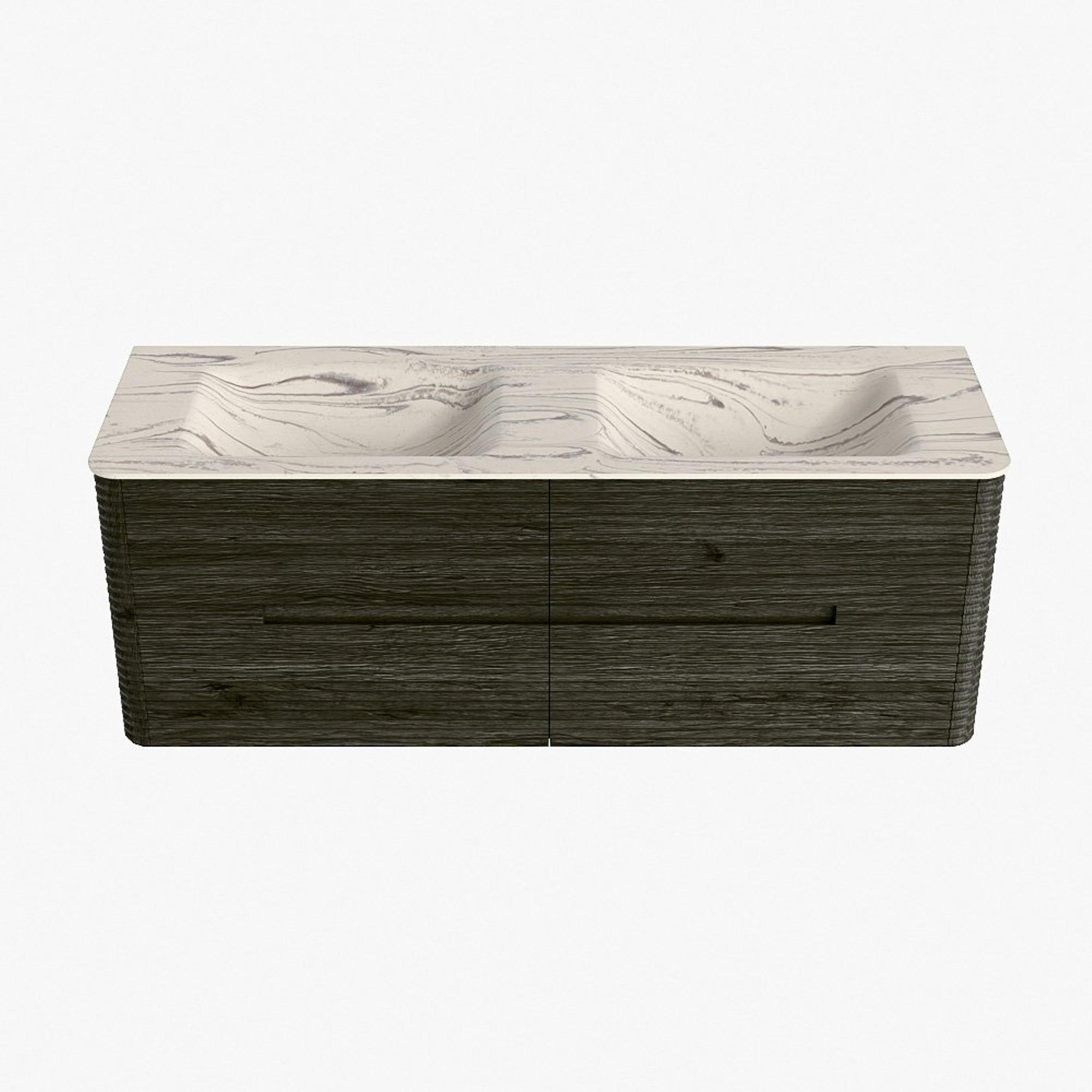 Mondiaz CIRO-DLUX Ensemble de meubles de salle de bains - 140x45x50cm - Plan vasque solid surface Nata - 2 vasques Double - sans trous de robinet - 4 tiroirs - Shadow
