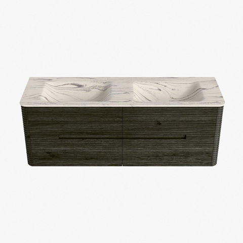 Mondiaz CIRO-DLUX Meuble de salle de bains - 140x45x50cm - Plan vasque Solid surface Nata - 2 vasques Double - 2 trous de robinet - 4 tiroirs - Shadow