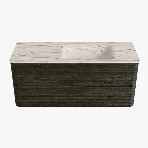 Mondiaz CIRO-DLUX Meuble de salle de bains - 120x45x50cm - plan-vasque Solid surface Nata - 1 vasque à droite - sans trous de robinetterie - 2 tiroirs - Shadow