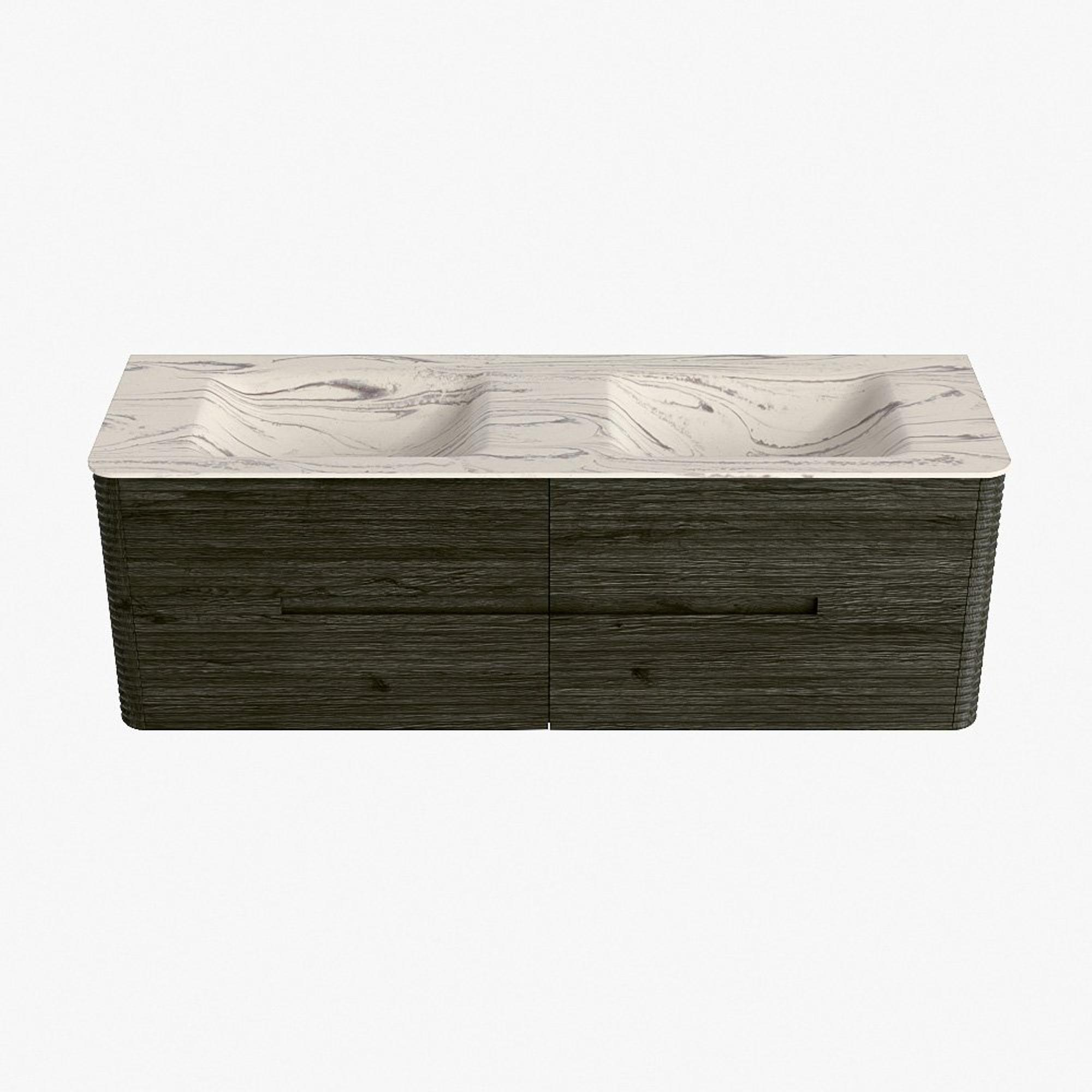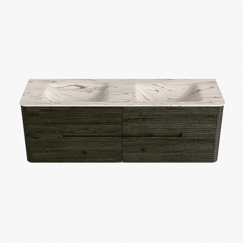 Mondiaz CIRO-DLUX Ensemble de meubles de salle de bains - 150x45x50cm - plan vasque en solid surface Nata - 2 vasques Double - sans trous de robinet - 4 tiroirs - Shadow