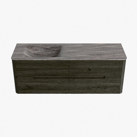 Mondiaz CIRO-DLUX Ensemble de meubles de salle de bains - 140x45x50cm - Plan vasque solid surface Oza - 1 lavabo à gauche - 1 trou de robinetterie - 4 tiroirs - Shadow