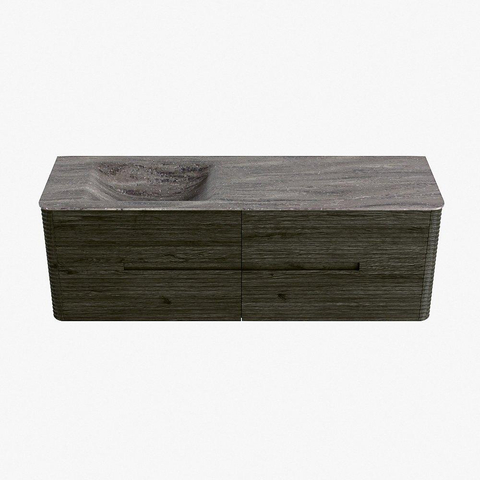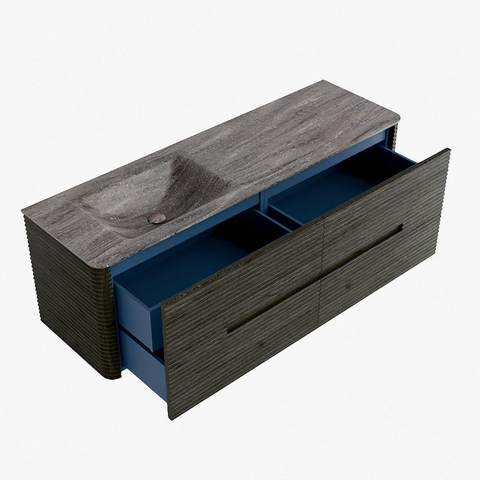 Mondiaz CIRO-DLUX Ensemble de meubles de salle de bains - 150x45x50cm - Plan vasque Solid surface Oza - 1 lavabo à gauche - 1 trou de robinet - 4 tiroirs - Shadow