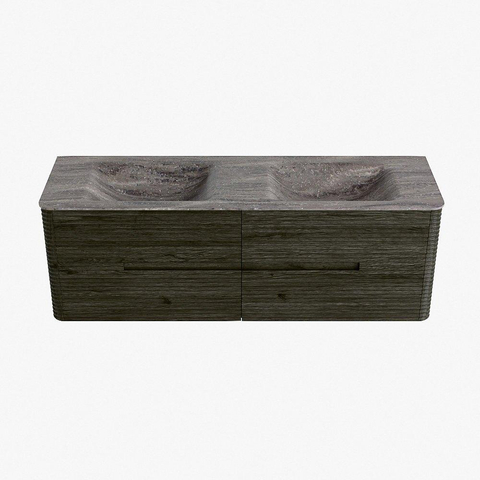Mondiaz CIRO-DLUX Ensemble de meubles de salle de bains - 150x45x50cm - plan-vasque Solid surface Oza - 2 vasques Double - sans trous de robinet - 4 tiroirs - Shadow