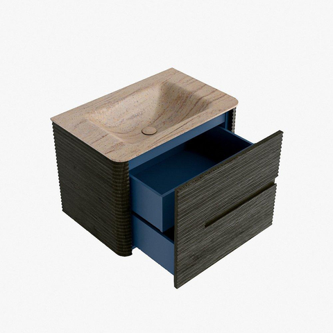 La praticité est un élément essentiel de la gamme CIRO. Le meuble dispose d’un grand tiroir avec un tiroir intérieur supplémentaire, idéal pour ranger de manière organisée tous les articles quotidiens de la salle de bain. Grâce à la poignée intégrée et au mécanisme de fermeture douce, la façade reste sobre, élégante et épurée.